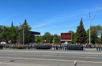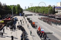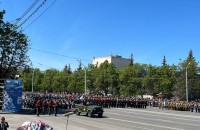 Колонны техники, а также курсанты и военные прошли по проспекту Октября. На параде строем прошли военные моряки, сотрудники ОМОН со служебными собаками, курсанты кадетских классов морских пехотинцев, конные кавалеристы в советской форме времен Великой Отечественной войны, девушки-курсанты МВД тоже приняли участие в мероприятии.