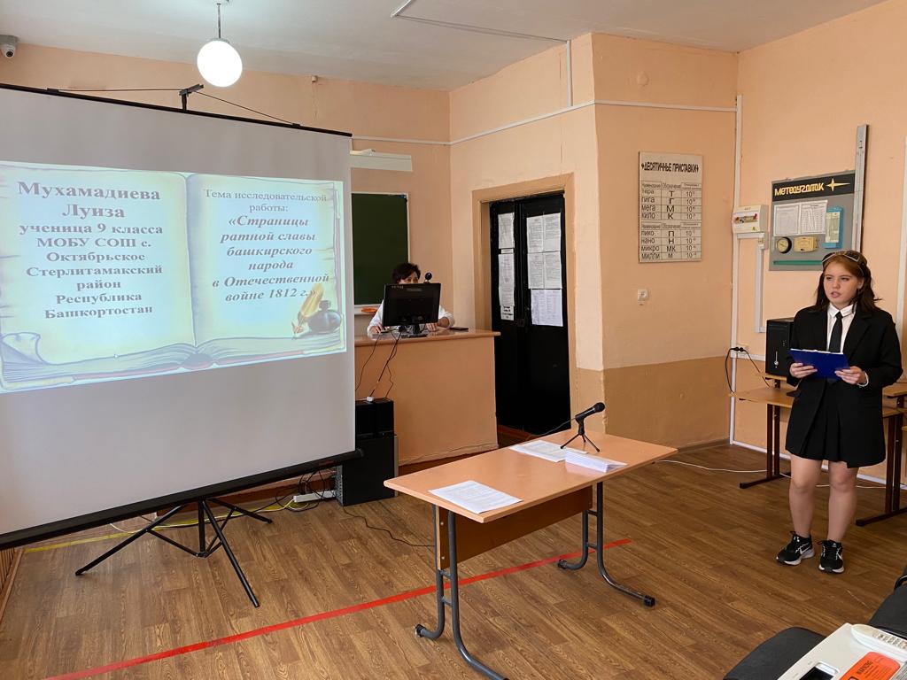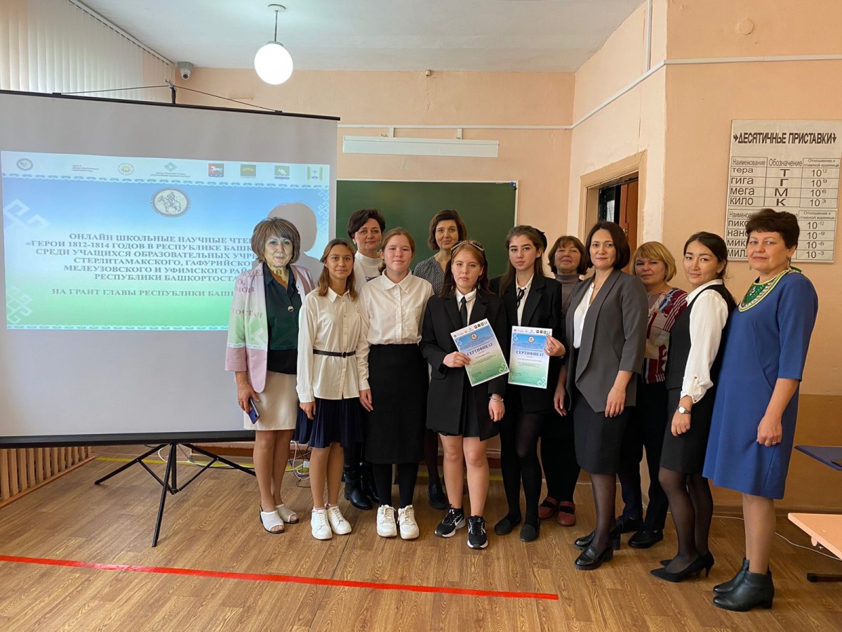 В рамках Культурно-исторического фестиваля «Памяти предков- будем достойны!» прошли школьные научные онлайн-чтения «Герои 1812-1814 годов в Республике Башкортостан». В чтениях участвовали школьники из СОШ с.Аючево имени Рима Янгузина Стерлитамакского района, Красноусольской башкирской гимназии-интерната им Нияза Абдулхаевича Мажитова Гафурийского района, Башкирской гимназии № 9 имени Кинзи Арсланова Мелеузовского района, Средней общеобразовательной школы с. Новая Отрадовка, лицея с.Булгаково Уфимского района и студенты Уфимского училища искусств (колледж). В чтениях приняли участие не менее 50 человек.