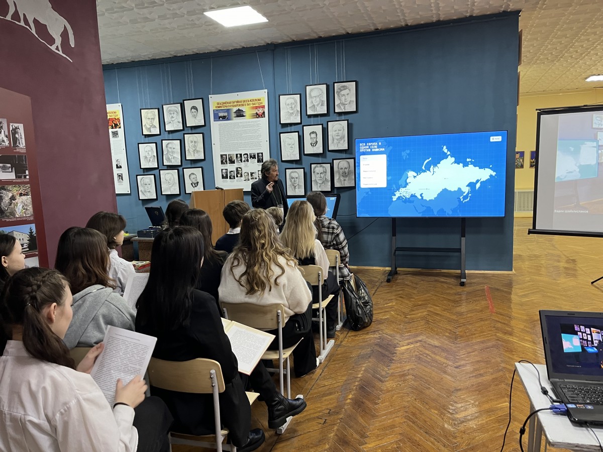 В рамках подготовки историко-мемориального проекта «Фронт в тылу врага. Антифашистское движение в Европе в годы Второй мировой войны» участники проекта - учащиеся Частного образовательного учреждения Центр образования «Новошкола» 15 февраля 2024 года посетили Кушнаренковский историко-краеведческий музей. Учащиеся с большим интересом ознакомились с экспозициями музея, особенный интерес вызвали стенды и экспонаты музея, посвящённые страницам истории Коминтерна. В 1941-1943 годы исполком организации находился в эвакуации в Башкирии, члены Коминтерна жили в г.Уфе в гостинице «Башкирия», а в селе Кушнаренково была открыта секретная спецшкола для разведчиков. В Уфе работали выдающиеся деятели коммунистического движения Георгий Димитров, Пальмиро Тольятти, Долорес Ибаррури, Морис Торез и другие. Они внесли огромный вклад в победу, многие из них принесли себя на её алтарь. Кроме того, своих детей они почти все отправили на фронт.