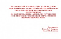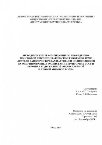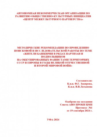 Методические рекомендации по проведению поисковой и исследовательской работы по теме «Жители Башкирии в рядах партизан и подпольщиков на оккупированных фашистами территориях СССР и Европы в годы Великой Отечественной и Второй мировой войн».