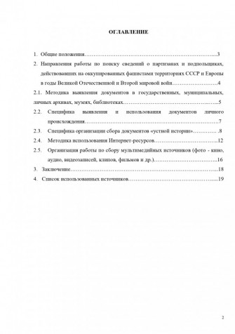 - Направления работы по поиску сведений о партизанах и подпольщиках, действовавших на оккупированных фашистами территориях СССР и Европы в годы Великой Отечественной и Второй мировой войн…………………….4