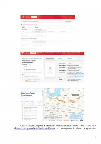 Интернет-портал «Память народа» (https://pamyat-naroda.ru/) создан Министерством обороны и включает в себя информацию банков данных ОДБ «Мемориал» и «Подвиг народа в Великой Отечественной войне 1941-1945 гг.». На портале представлена информация о более чем 18 млн солдат и офицеров, более 100 тысяч военных карт, а также большое количество записей о подвигах советского народа. С помощью данного ресурса любой желающий может узнать боевой путь своего родственника от призыва до возвращения домой.