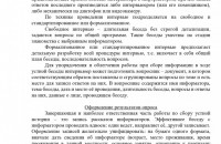 Свободное интервью – длительная беседа без строгой детализации, задаются вопросы по общей программе. Такие беседы уместны на стадии знакомства с выбранным информатором.