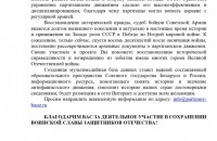 БЛАГОДАРИМ ВАС ЗА ДЕЯТЕЛЬНОЕ УЧАСТИЕ В СОХРАНЕНИИ ВОИНСКОЙ СЛАВЫ ЗАЩИТНИКОВ ОТЕЧЕСТВА!