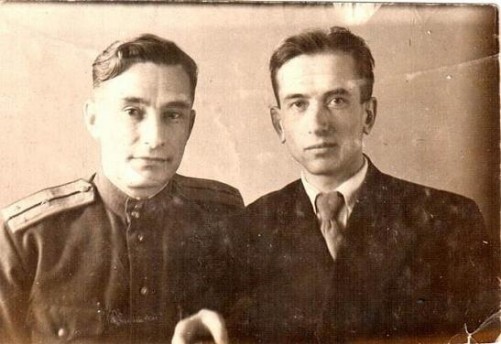 Осталась только фотография 1939 года, на которой слева Василий Иванович Ершов в форме старшего лейтенанта-артиллериста.