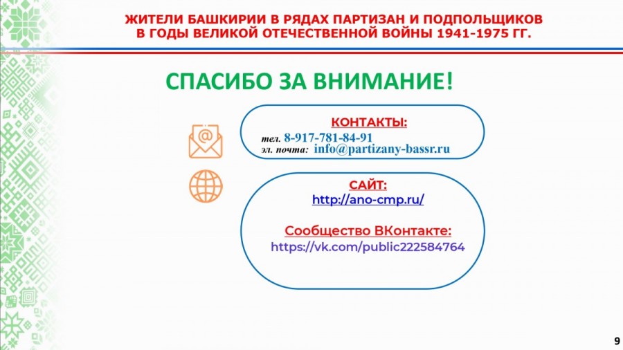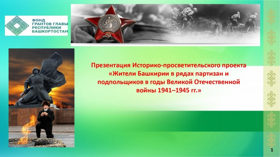 Презентация Историко-просветительского проекта «Жители Башкирии в рядах партизан и подпольщиков в годы Великой Отечественной войны 1941–1945 гг.»