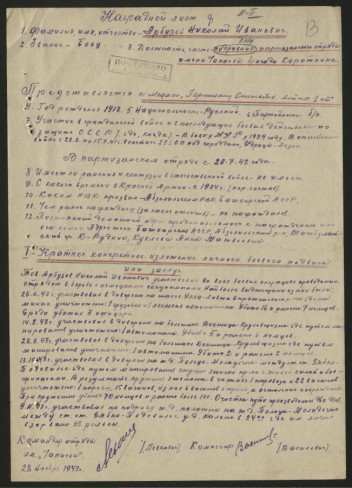 В наградном листе по представлению Н.И.Арбузова к медали «Партизану Отечественной войны» I-й степени пересиляются его подвиги: