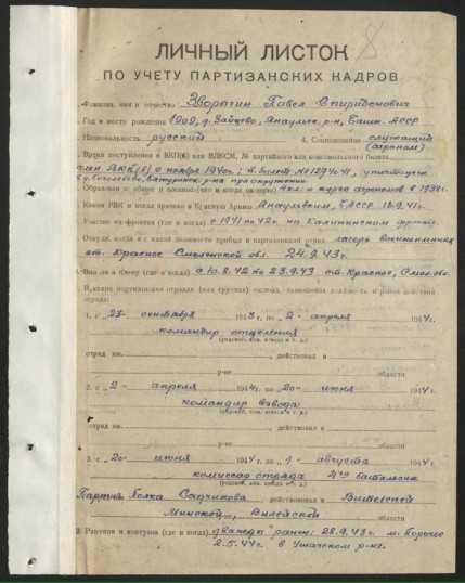В Смоленском партизанском полку особого назначения полковника Садчикова И.Ф. служил уроженец Янаульского района Башкирской АССР Павел Зворыгин.