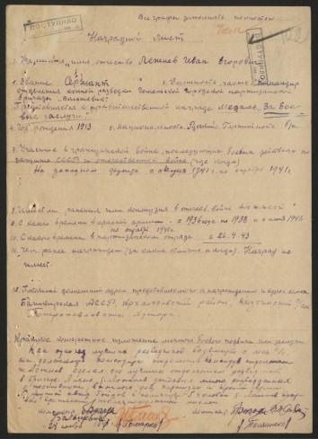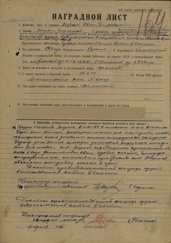 За боевые заслуги уже в феврале 1945 г. Лежнев Иван Григорьевич представлен к награждению орденом Отечественной войны II степени.