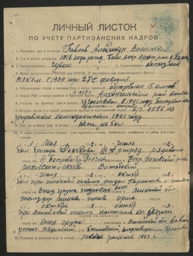 Просим всех, кто что-нибудь знает о Павлове Александре Васильевиче, поделиться информацией и фотографиями с создателями базы данных, написав по адресу электронной почты: info@partizany-bassr.ru.