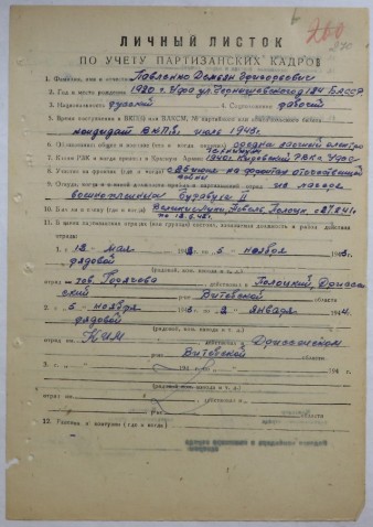 На фронтах Великой Отечественной войны Демьян Григорьевич Павленко был с 25 июня 1941 года. С 27.02.1941 года (возможно описка – 27.02.1942 года) по 12.05.1942 г. был в плену в г.Великие Луки, Невель, Полоцк. В партизанский отряд “Боевой” прибыл 12 мая 1942 года из лагеря военнопленных Буравуха II. Был в отряде с 12 мая 1942 г. по 5 ноября 1943 года в должности рядового. С 5 ноября 1943 года по 2 января 1944 года воевал в составе отряда «КИМ» в Дриссенском районе Витебской области в должности рядового. В Личном листке по учету партизанских кадров от 2 января 1944 г. о Павленко Д.Г. говорится: «За время пребывания в отряде проявил себя как честный, дисциплинированный и боевой товарищ. Лучший снайпер отряда, имеет на своем счету девять убитых фашистов.».