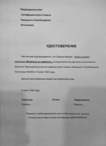 Учителем школы д. Саузбаш Краснокамского района Республики Башкортостан Анфисой Миникаевой представлена информация о земляке - участнике антифашистского Народно-освободительного движения Югославии Магдане Газизове.