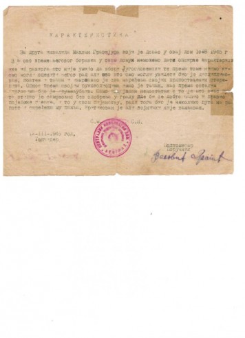 Вот отрывок из школьного сочинения внучки Райли, которое сохранилось в школьном музее: “В одном из боёв дедушка был тяжело ранен. Это было в последние дни войны. Долго лежал в госпиталях, однажды даже посчитали его умершим и вынесли в коридор. Но мой дедушка оказался крепким, очнулся и сам заполз в палату. Одиннадцать месяцев он лечился в госпиталях Югославии, потом уже на Родине. И только в 1946-м году вернулся домой. Здесь он женился, вырастил шестерых детей и всю жизнь работал в колхозе, хотя у него была только одна рука. К сожалению, врачи не смогли сохранить его левую руку. Его уже нет среди нас, но я очень любила. Он был жизнерадостным, добрым, трудолюбивым, замечательным отцом и дедом, никогда не жаловался на трудности и учил нас преодолевать их. Я очень горжусь дедом своим и стараюсь быть достойной его памяти”.