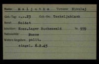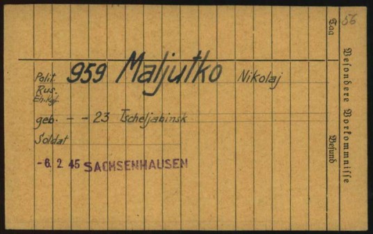 На сайте «Форум поисковых движений» http://forum.patriotcenter.ru/index.php?topic=103403.0 есть информация о Николае Малютко (Nikolaj Maljutko) – Саламатине Николае Филипповиче (Solomatin Nikоlay Filipovitс), который попал в плен 4 марта 1944 г. под Могилевом. По данным документов, хранящимся в архиве Бад-Арользена Германии военнопленный Соломатин Николай Филиппович (Николай Малютка) 1919 года рождения, Давлекановский район деревня Петропавловка Башкирская АССР, в другом документе 1923 года рождения г.Челябинск, попал в плен 4 марта 1944 года, как партизан. Путь в плену: 1)Гестапо Stettin – 14 дней, 2) Pilnitz – 30 дней, 3) Sachsenhausen 8 месяцев 4) Buchenwald 16.1.1945. Лагерный номер 959.
