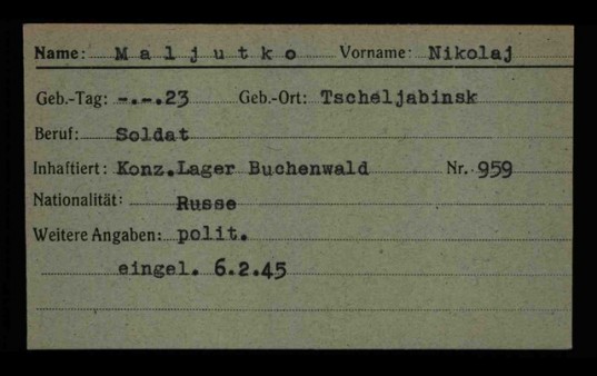 11 апреля 1945 года произошло освобождение узников концлагеря Бухенвальд. Заключенные взяли в руки оружие, напали на охрану и чуть более чем за час захватили территорию. После окончания восстания в Бухенвальд пришли американские войска. Бежавших эсэсовцев отлавливали по близлежащим лесам. Тысячи военнопленных были спасены. Однако сотни истощённых узников умерли после освобождения лагеря. Среди них и наш земляк - Саламатин Николай Филиппович (Николай Малютко) умер в лагере военнопленных «Ваймар-Бухенвальд» 21 апреля 1945 года. В «Книге мертвых» Бухенвальда значится: Nikolaj Maljutko. Todesdatum (дата смерти): 21.04.1945. Sterbeort (место смерти): Buchenwald.