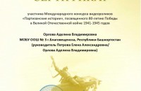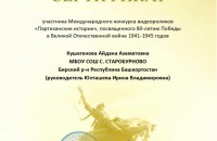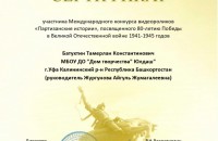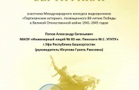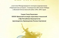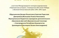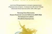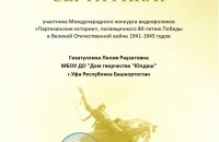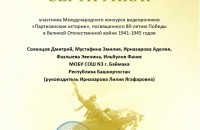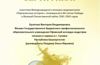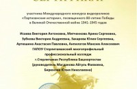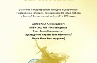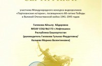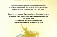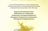 Сертификаты участников Международного конкурса «Партизанские истории».