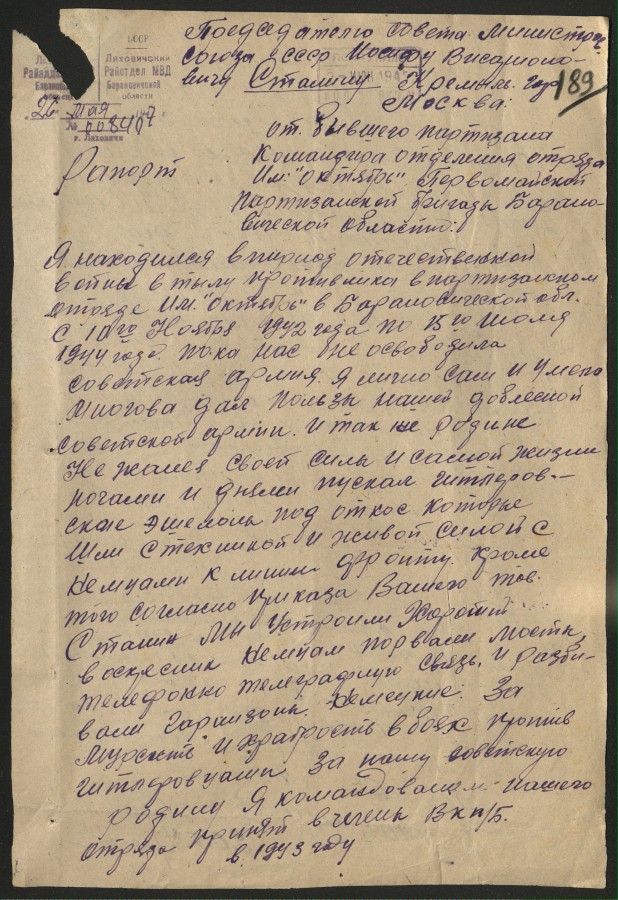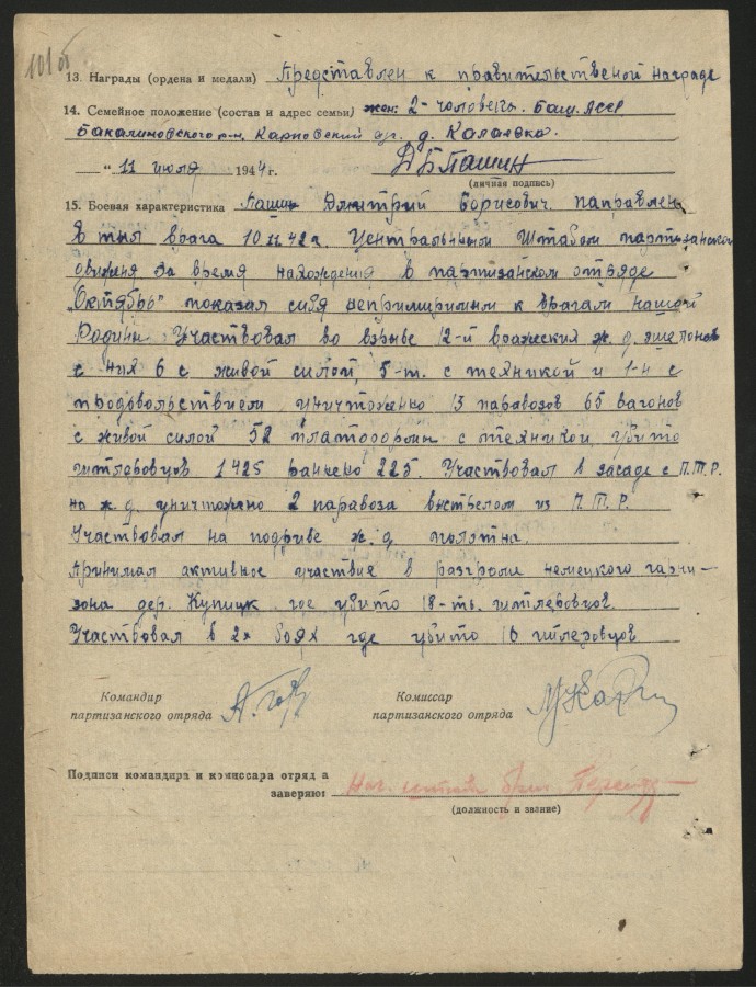 За время партизанской борьбы его группой:
