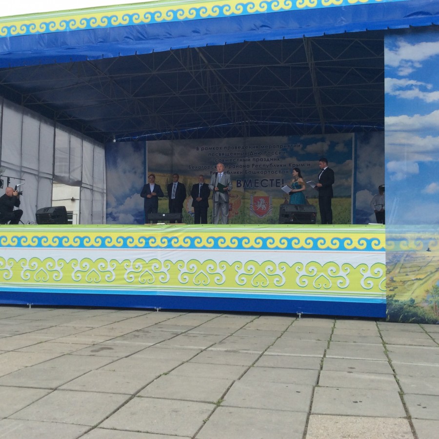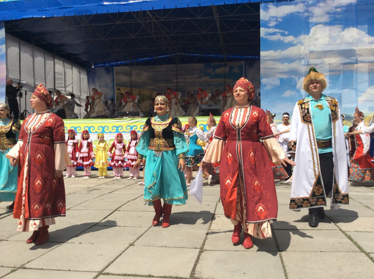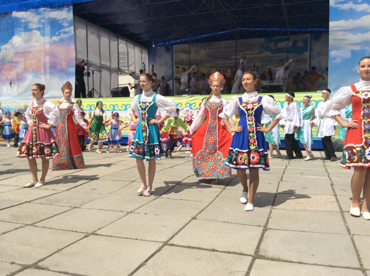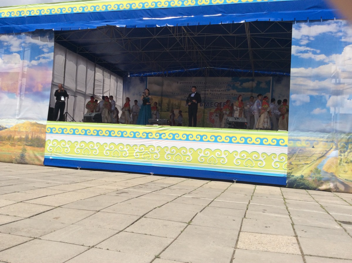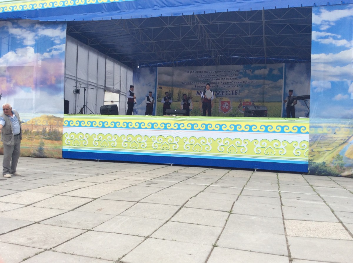 12 июня 2014 года на центральной площади г.Белогорска Республики Крым в рамках празднования Дня России состоялся большой праздничный концерт мастеров искусств Республики Башкортостан и самодеятельных коллективов Белогорского района Республики Крым «Мы вместе!». Праздничные мероприятия посетила официальная делегация Республики Башкортостан во главе с Председателем Государственного Собрания – Крултая Республики Башкортостан К.Б. Толкачевым и заместитель министра культуры Республики Крым С.Д.Косарич. Для участия в празднике приехали также руководители башкирских общественных организаций из Симферополя, Ялты, Коктебеля и других городов Крыма, а также из г.Киева. Константин Борисович поздравил жителей города и гостей праздника с Днем России и передал приветствие Президента Республики Башкортостан Р.З. Хамитова. Участников праздника также поздравили председатель Белогорской райгорадминистрации К.И. Луговик, председатель районного совета С.С. Худоба и глава Белогорского городского совета А.О. Кангиев. Большое впечатление на присутствующих произвело выступление Верховного муфтия России шейх-уль ислам Талгата Таджуддина. Это первое празднование Дня России в Республике Крым после ее воссоединения с Россией и прошло оно на высоком патриотическом подъеме. Концертная программа состояла из нескольких блоков: «Россия», «Мы вместе». Начался концерт вокально-хореографической композицией «Звоны России» в исполнении Фольклорного ансамбля песни и танца «Мирас» г.Уфы и детских коллективов художественной самодеятельности Белогорского района. В концертной программе также приняли участие прославленные артисты республики: Алена Завьялова, Римма Амангильдина, Вадим Закиев, Руслан Сайфутдинов, Любовь Буторина, Диана Ишниязова, Владимир Орфеев, Минзифа Искужина, Венера Юлгильдина, Марсель Саитов, Салават Мухамедьяров. Эстрадно-фольклорная группа «Далан» покорила зрителей песней «Россия – Башкортостан», которую Артур Туктагулов исполнил верхом на коне. Большое впечатление на зрителей произвела песня «Я, ты, он, она» (Р.Рождественский-Д.Тухманов) в исполнении Любови Буториной и Дианы Ишниязовой, детского хора и коллективов художественной самодеятельности Белогорского района. Ведущие концерта заслуженная артистка Республики Башкортостан Рушанна Бабич, Искандер Урманцев и Влада Гудкова профессионально поддерживали настроение зрителей. Зрители были восхищены мастерством артистов Республики Башкортостан и профессионализмом режиссера А.Х. Зубайдуллина. Между Уфой и Белогорском более 2,5 тысяч километров, но, пожалуй, никогда еще жители Башкортостана не были так солидарны с жителями Крыма. В каждой песне, в каждом танце, исполняемых на сцене и белогорцами и башкортостанцами, звучала гордость за Россию. А песня «Мы вместе» в исполнении Любови Буториной, Дианы Ишниязовой, Вадима Сайфуллина и Руслана Сайфутдинова стала апофеозом праздника и сопровождалась скандированием «Россия! Спасибо!» со слезами на глазах. На стадионе города прошли спортивные соревнования, а на центральной площади развернулись этнографические дворики, выставки декоративно-прикладного искусства и ремесленного мастерства. Празднества продолжились вечерней дискотекой с участием белогорских и башкирских артистов и завершились в 24-00 праздничным фейер