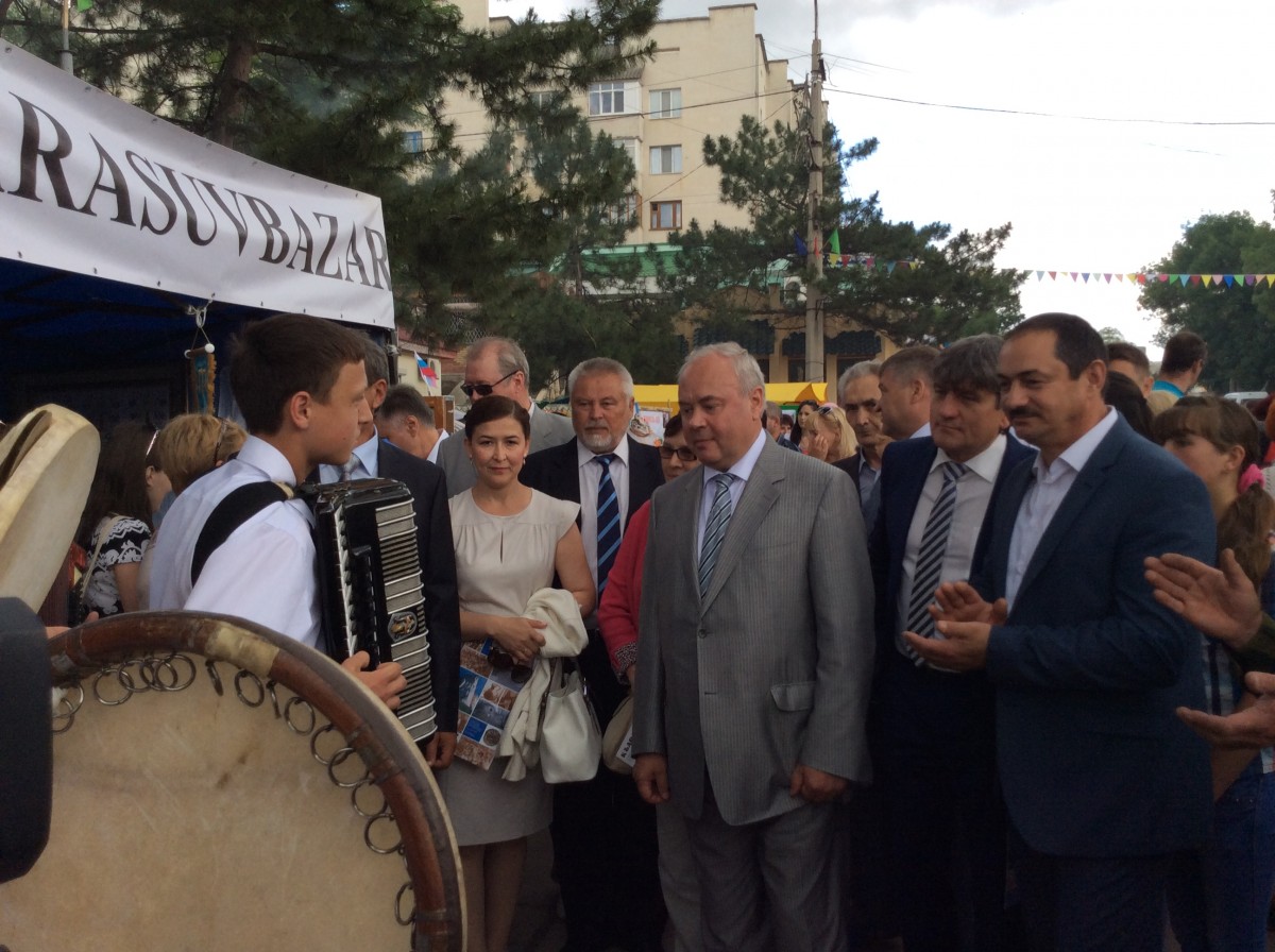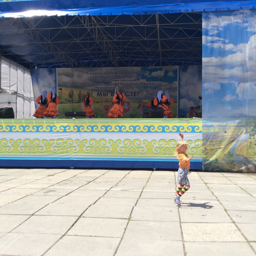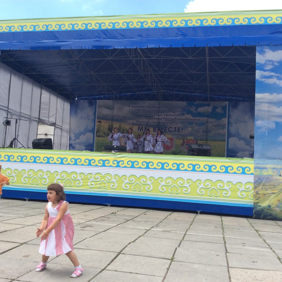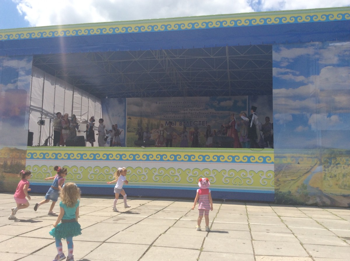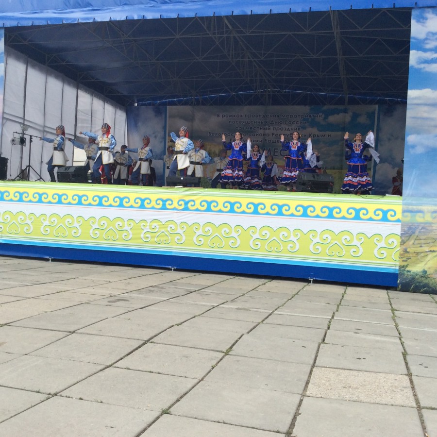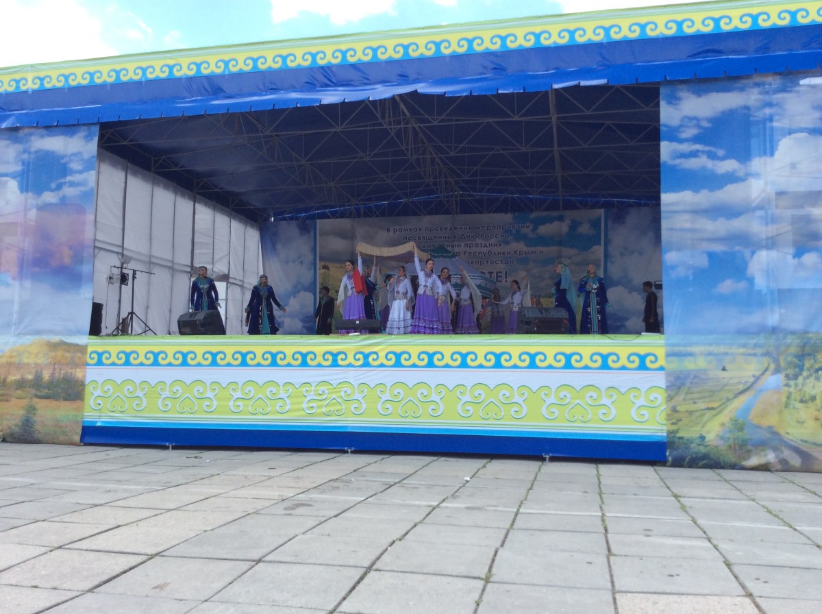12 июня 2014 года на центральной площади г.Белогорска Республики Крым в рамках празднования Дня России состоялся большой праздничный концерт мастеров искусств Республики Башкортостан и самодеятельных коллективов Белогорского района Республики Крым «Мы вместе!». Праздничные мероприятия посетила официальная делегация Республики Башкортостан во главе с Председателем Государственного Собрания – Крултая Республики Башкортостан К.Б. Толкачевым и заместитель министра культуры Республики Крым С.Д.Косарич. Для участия в празднике приехали также руководители башкирских общественных организаций из Симферополя, Ялты, Коктебеля и других городов Крыма, а также из г.Киева. Константин Борисович поздравил жителей города и гостей праздника с Днем России и передал приветствие Президента Республики Башкортостан Р.З. Хамитова. Участников праздника также поздравили председатель Белогорской райгорадминистрации К.И. Луговик, председатель районного совета С.С. Худоба и глава Белогорского городского совета А.О. Кангиев. Большое впечатление на присутствующих произвело выступление Верховного муфтия России шейх-уль ислам Талгата Таджуддина. Это первое празднование Дня России в Республике Крым после ее воссоединения с Россией и прошло оно на высоком патриотическом подъеме. Концертная программа состояла из нескольких блоков: «Россия», «Мы вместе». Начался концерт вокально-хореографической композицией «Звоны России» в исполнении Фольклорного ансамбля песни и танца «Мирас» г.Уфы и детских коллективов художественной самодеятельности Белогорского района. В концертной программе также приняли участие прославленные артисты республики: Алена Завьялова, Римма Амангильдина, Вадим Закиев, Руслан Сайфутдинов, Любовь Буторина, Диана Ишниязова, Владимир Орфеев, Минзифа Искужина, Венера Юлгильдина, Марсель Саитов, Салават Мухамедьяров. Эстрадно-фольклорная группа «Далан» покорила зрителей песней «Россия – Башкортостан», которую Артур Туктагулов исполнил верхом на коне. Большое впечатление на зрителей произвела песня «Я, ты, он, она» (Р.Рождественский-Д.Тухманов) в исполнении Любови Буториной и Дианы Ишниязовой, детского хора и коллективов художественной самодеятельности Белогорского района. Ведущие концерта заслуженная артистка Республики Башкортостан Рушанна Бабич, Искандер Урманцев и Влада Гудкова профессионально поддерживали настроение зрителей. Зрители были восхищены мастерством артистов Республики Башкортостан и профессионализмом режиссера А.Х. Зубайдуллина. Между Уфой и Белогорском более 2,5 тысяч километров, но, пожалуй, никогда еще жители Башкортостана не были так солидарны с жителями Крыма. В каждой песне, в каждом танце, исполняемых на сцене и белогорцами и башкортостанцами, звучала гордость за Россию. А песня «Мы вместе» в исполнении Любови Буториной, Дианы Ишниязовой, Вадима Сайфуллина и Руслана Сайфутдинова стала апофеозом праздника и сопровождалась скандированием «Россия! Спасибо!» со слезами на глазах. На стадионе города прошли спортивные соревнования, а на центральной площади развернулись этнографические дворики, выставки декоративно-прикладного искусства и ремесленного мастерства. Празднества продолжились вечерней дискотекой с участием белогорских и башкирских артистов и завершились в 24-00 праздничным фейер