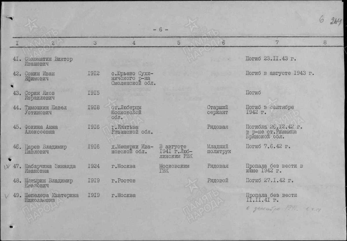 Сегодня сведения о Зинаиде Ивановне Шабарчиной ищет её родственник Вадим Петров.