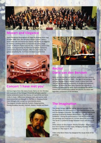 Программа «Воображение» включала в себя исполнение музыкальных произведений в сочетании с презентацией произведений живописи и визуальным шоу. Учащиеся и преподаватели Республиканской художественной гимназии имени К.А. Давлеткильдеева, студенты и молодые талантливые художники Уфимской государственной академии искусств им. Загира Исмагилова и музыканты голландского ансамбля «Гексагон» создали совместную концертную программу по произведению Модеста Мусоргского «Картинки с выставки». В рамках данной программы опытные музыканты сотрудничали с юными художниками – учащимися детских школ искусств Республики Башкортостан.