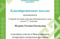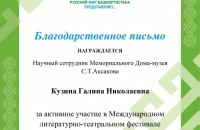 Учащиеся и педагоги выразили благодарность научному сотруднику Дома музея С.Т.Аксакова Татьяне Петровой за увлекательные занятия, способствовавшие развитию творческой личности детей.