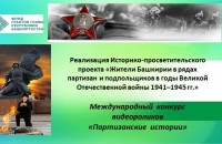 Республиканский детский образовательный центр туризма совместно с Автономной некоммерческой организацией по развитию общественно-культурных инициатив «Центр межкультурного партнерства» провели при поддержке Фонда Главы Республики Башкортостан в рамках Историко-просветительского проекта «Жители Башкирии в рядах партизан и подпольщиков в годы Великой Отечественной войны 1941–1945 гг.» Международный конкурс видеороликов «Партизанские истории».
