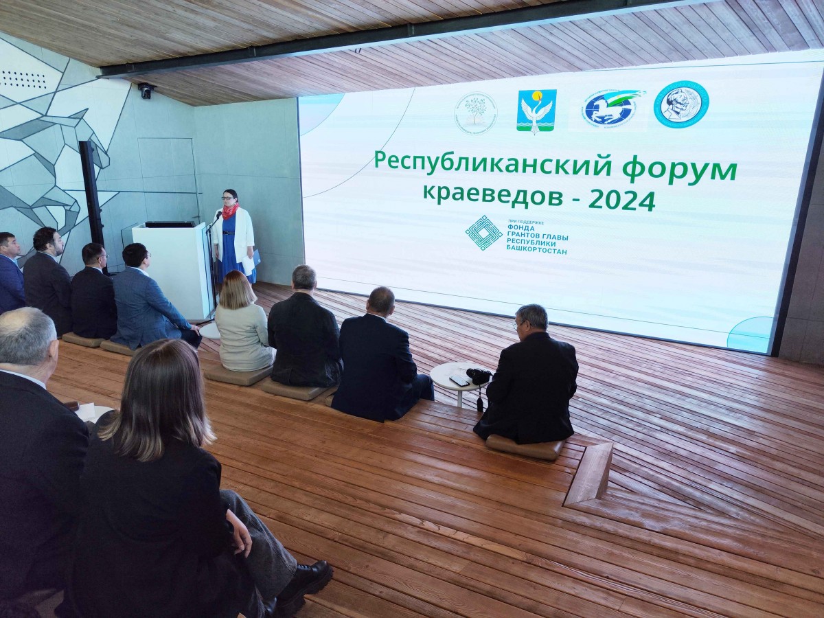 Модератором форума выступила Юмагужина Лейсан Рафиковна – и.о. председателя РОО «Общество краеведов» Республики Башкортостан. Она рассказала об итогах деятельности Региональной общественной организации «Общество краеведов» Республики Башкортостан.