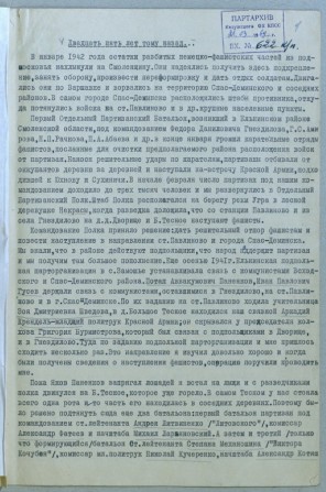 - Характеристика на партизанский отряд имени 24-й годовщины РККА за 1942 год;