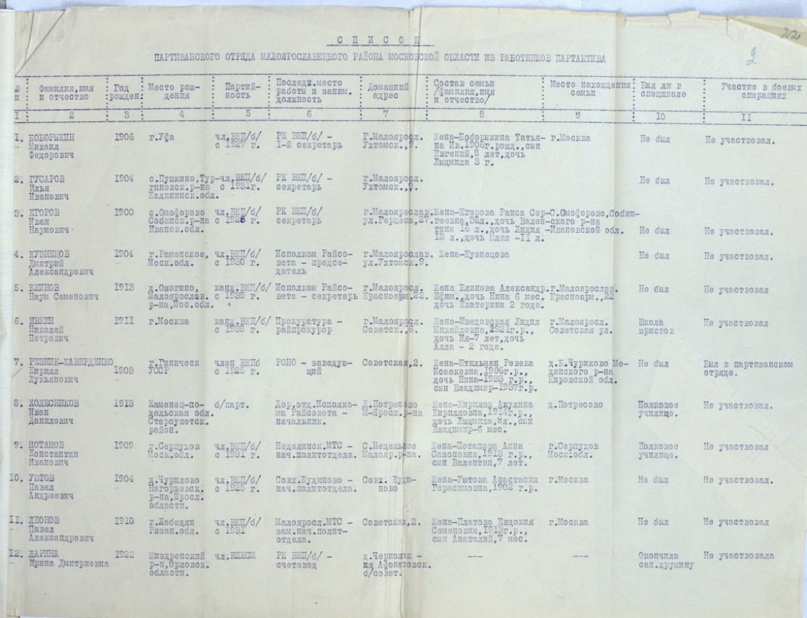 - Список партизанского отряда Малоярославецкого района Московской области за 1942 год, в котором значится Боборыкин Михаил Федорович;
