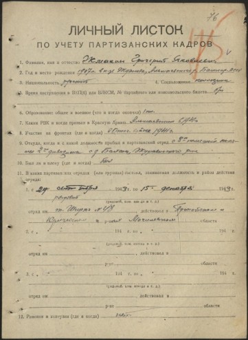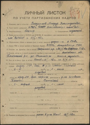 Участвовал в партизанском движении с 25.09.1943 по __?__
