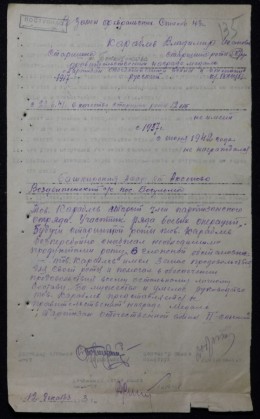 Участвовал в партизанском движении с __?__ по 06.01.1943 года, был