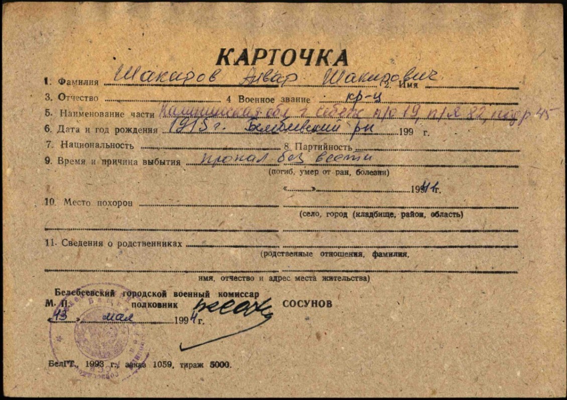 Место жительства до войны: Башкирская АССР, Альшеевский район (учился в Туймазинском районе)
