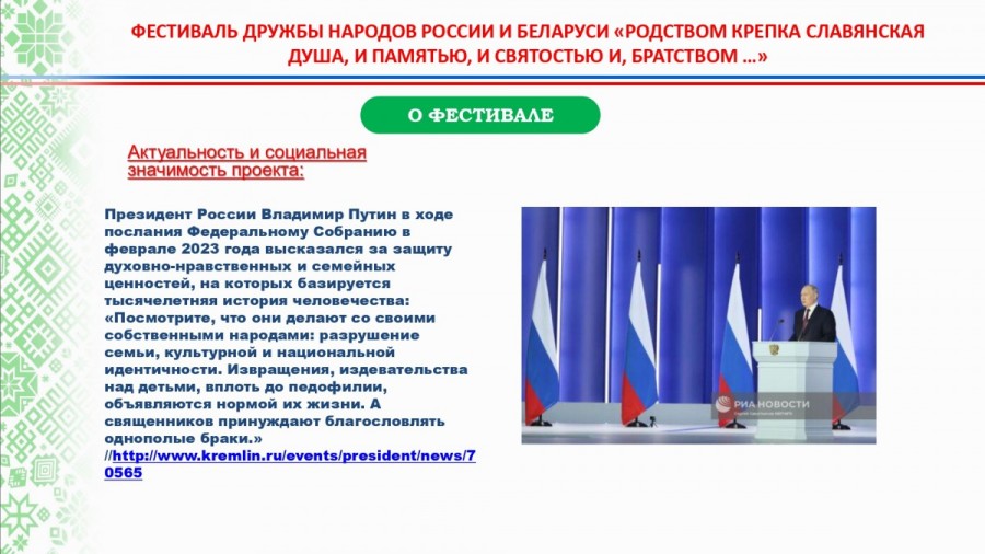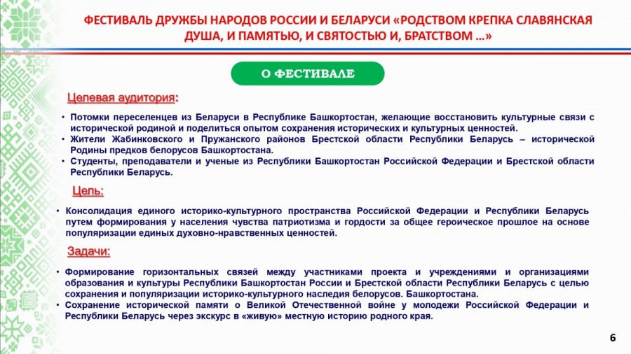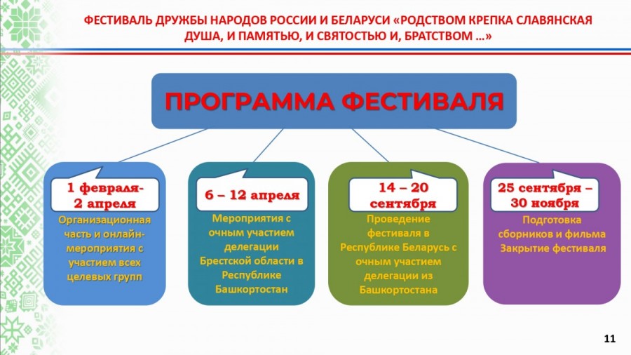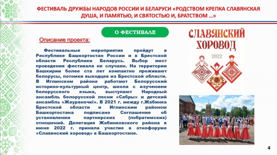 Фестиваль дружбы народов России и Беларуси «Родством крепка славянская душа, и памятью, и святостью, и братством...» планируется провести в Башкортостане в 2025 году