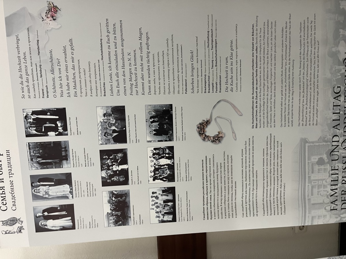 На выставке представлено 24 стенда, рассказывающих о богатой культуре и современном положении российских немцев. Посетители могут ознакомиться с копиями редких документов, карт, гравюр, фотографий и других редких экспонатов, хранящихся в музеях и архивах России и Германии. Выставка дополнена экспонатами из фондов Национального музея Республики Башкортостан. Так, в зале "Этнография народов Башкортостана" представлены предметы быта немецкой семьи: национальная одежда, ручные работы немцев, предметы труда и другие. Также на выставке представлена информация о выдающихся немцах, проживающих на территории Республики Башкортостан. В рамках открытия выставки потомки семей Агте и Виншу, проживающие в Уфе, рассказали о своих выдающихся предках, передавая дух времени и семейные традиции.