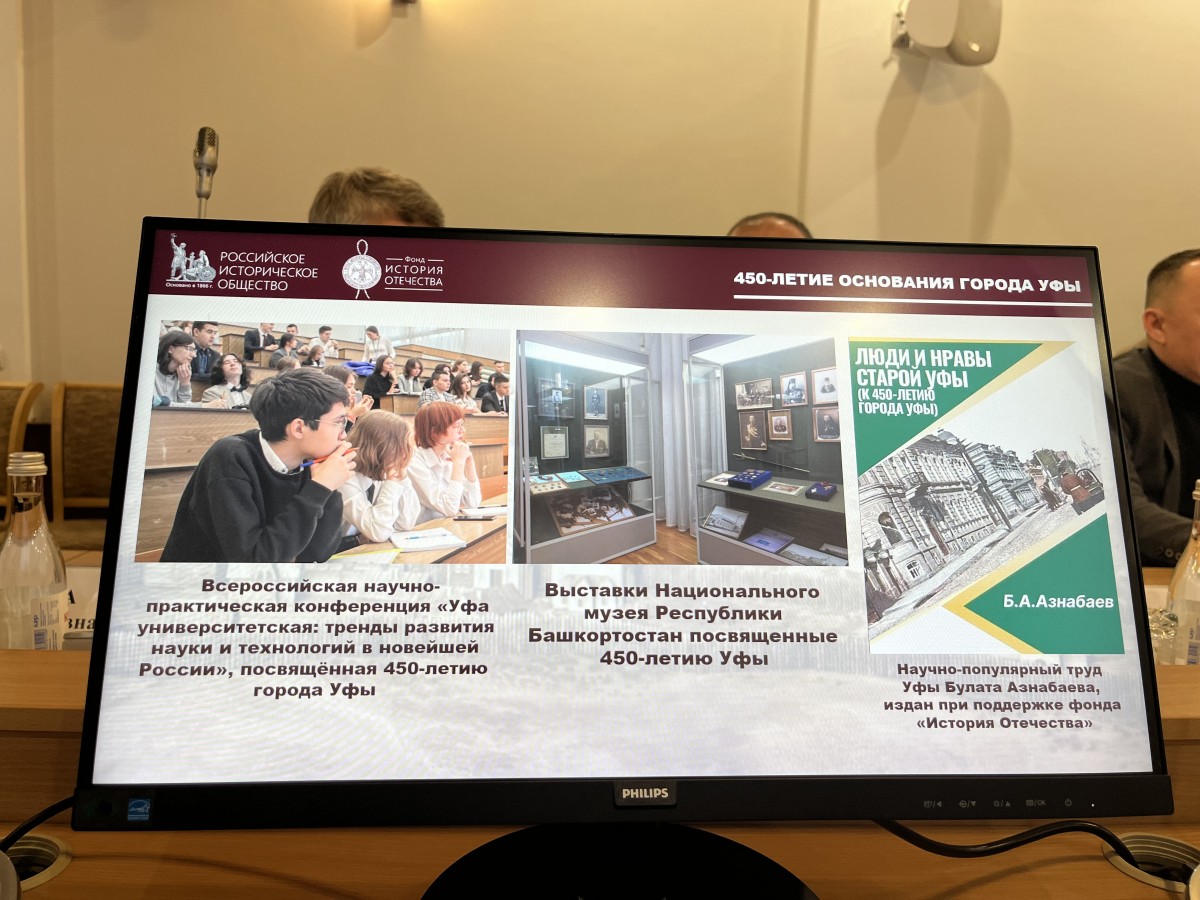 О деятельности регионального отделения общества и историко- просветительских проектах, реализованных в 2024 году, рассказал председатель Совета отделения РИО в РБ, директор Центра гуманитарных исследований Министерства культуры Республики Башкортостан Марат Марданов. Он обозначил приоритетные направления работы регионального отделения РИО - историческое просвещение, популяризация и освещение отечественной истории, сохранение исторической памяти и недопущение фальсификации истории. Докладчик назвал 2024 год, годом широкого обсуждения концепции преподавания отечественной истории в школах. Кроме того, год выдался богатым на юбилейные даты, в частности 450-летие Уфы, в рамках которого в республике провели целый комплекс мероприятий. В частности, были организованы научно-практические конференции «Уфа в российской истории», «Уфа университетская: тренды развития науки и технологий в новейшей России». При поддержке фонда «История Отечества» выпущено издание «Люди и нравы старой Уфы» и др.