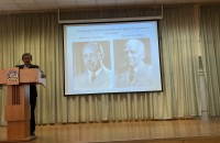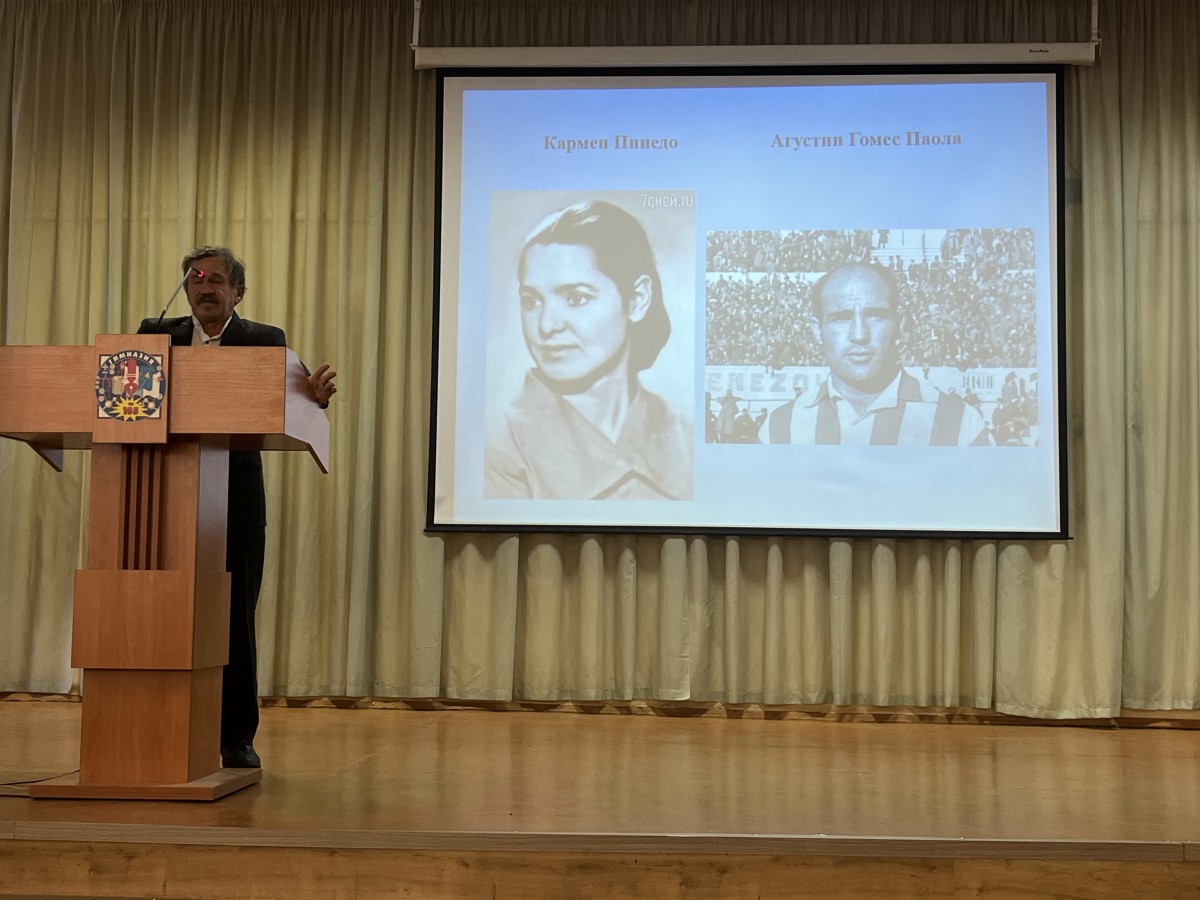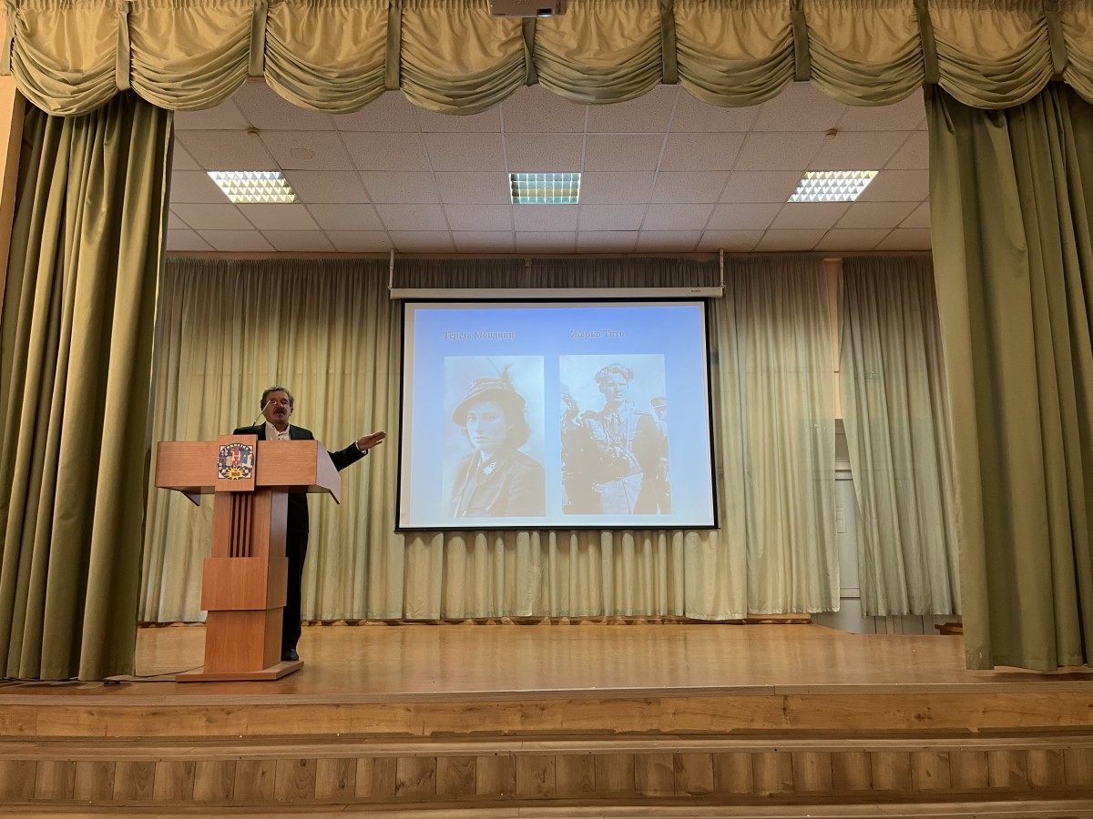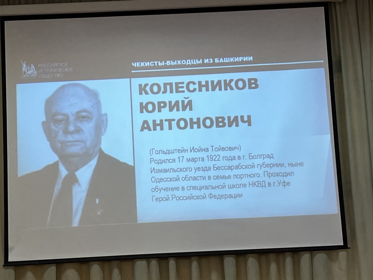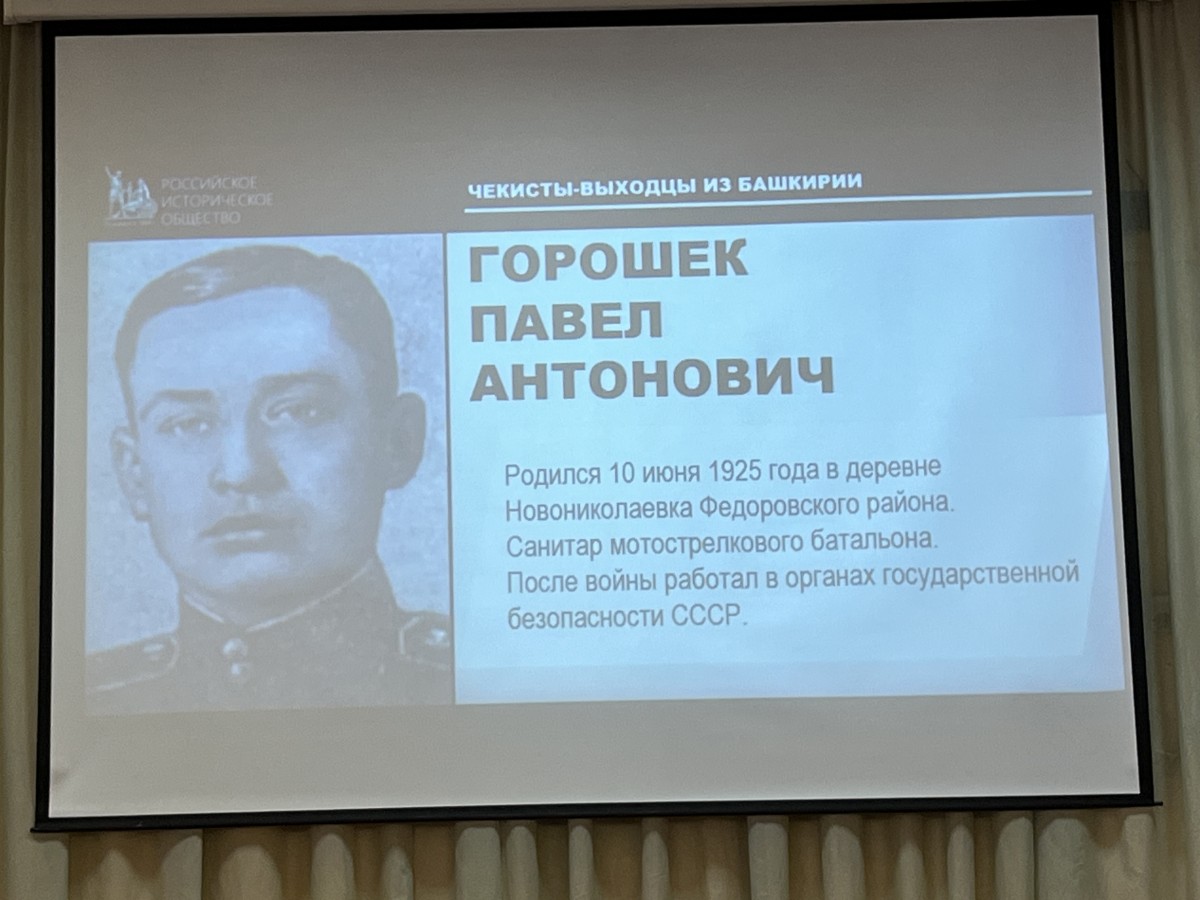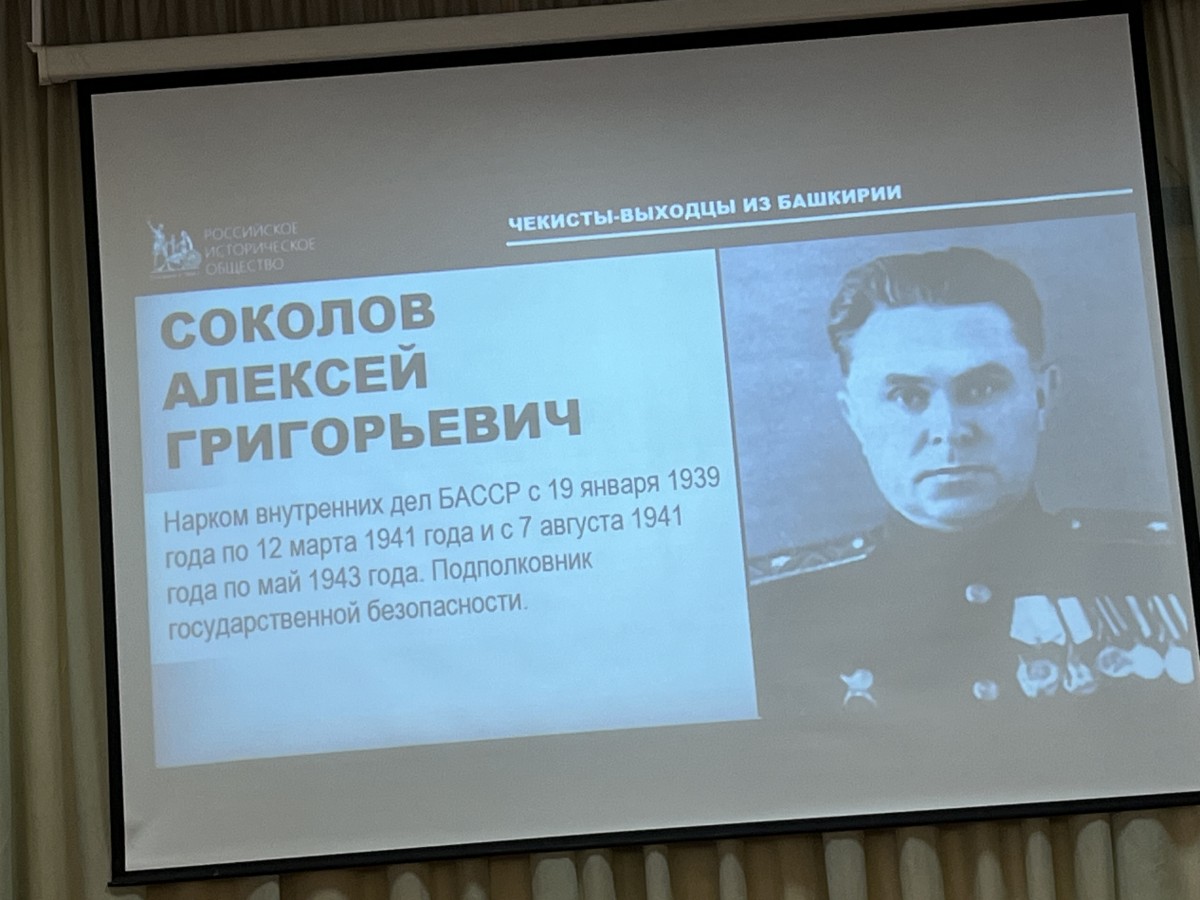 Председатель Совета отделения Российского исторического общества в Республике Башкортостан, директор Центра гуманитарных исследований Министерства культуры Республики Башкортостан, кандидат политических наук, полковник ФСБ в отставке - Марданов М.Х. рассказал ребятам о работе органов государственной безопасности в годы Великой Отечественной войны 1941-1945 гг. и о борьбе с бандитскими националистическими формированиями в послевоенное время.