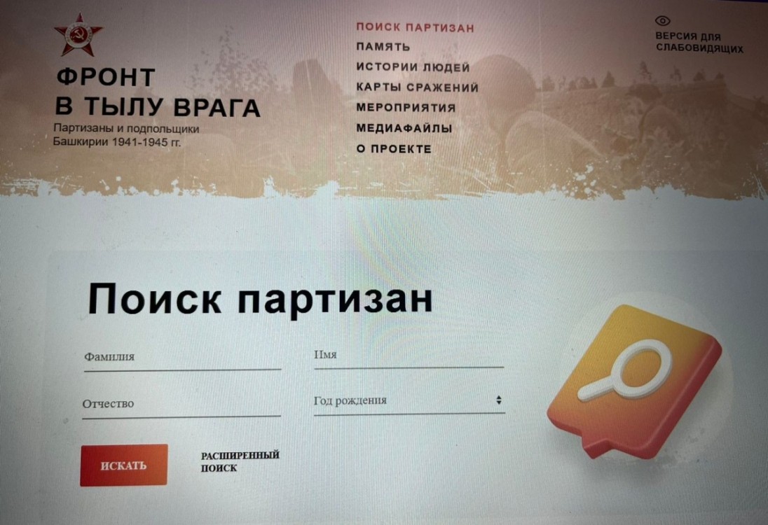 Сведения об участниках партизанского дивежения в годы Великой Отечественной войны 1941-1945 годов из Башкирии войдут в мультимедийную базу данных «Фронт в тылу врага», создаваемую при поддержке Фонда Главы Республики Башкортостан.