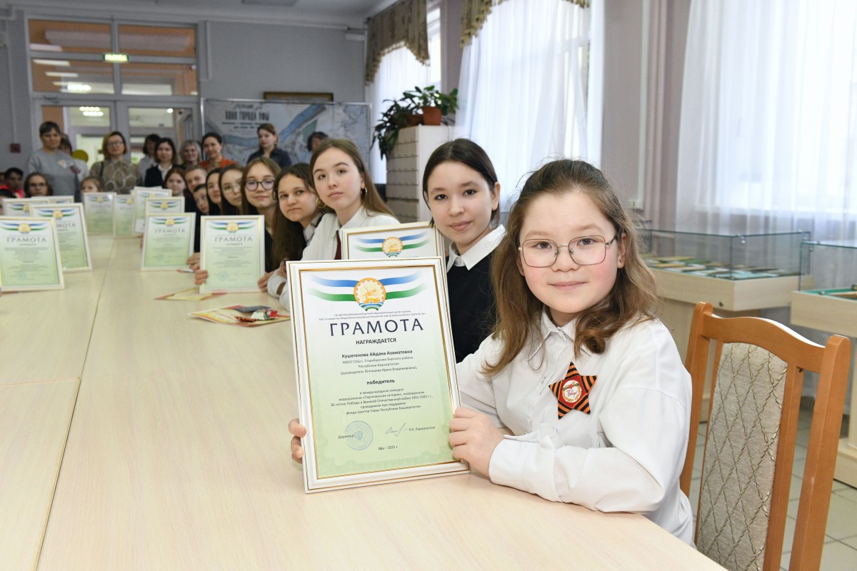 Дипломом победителя международного конкурса видеороликов «Партизанские истории», проводимого в рамках Историко-просветительского проекта «Жители Башкирии в рядах партизан и подпольщиков в годы Великой Отечественной войны 1941–1945 гг.» награждены:
