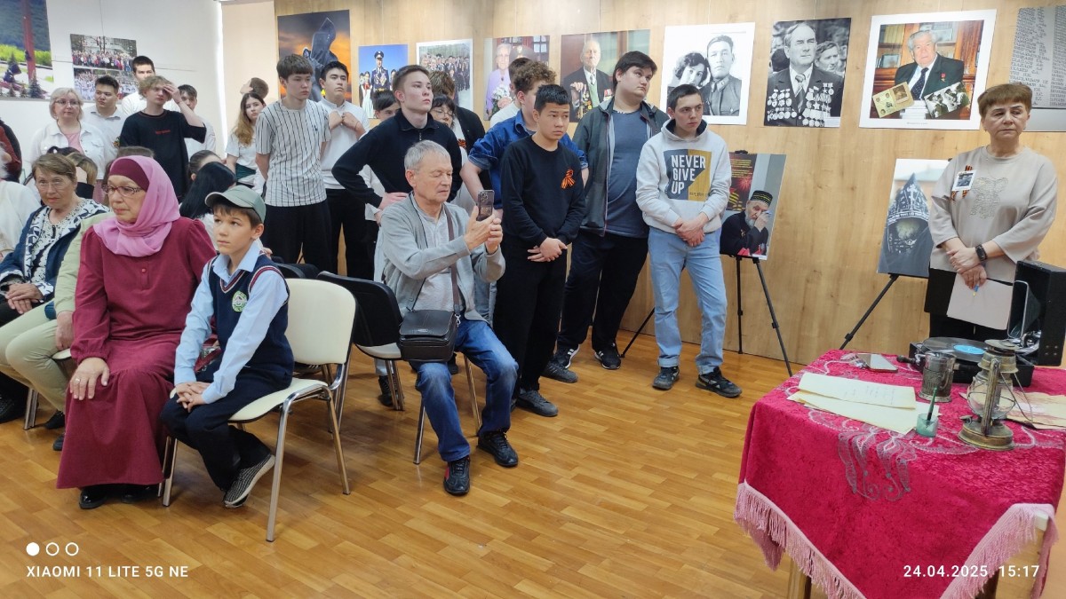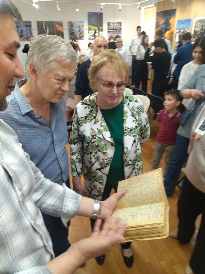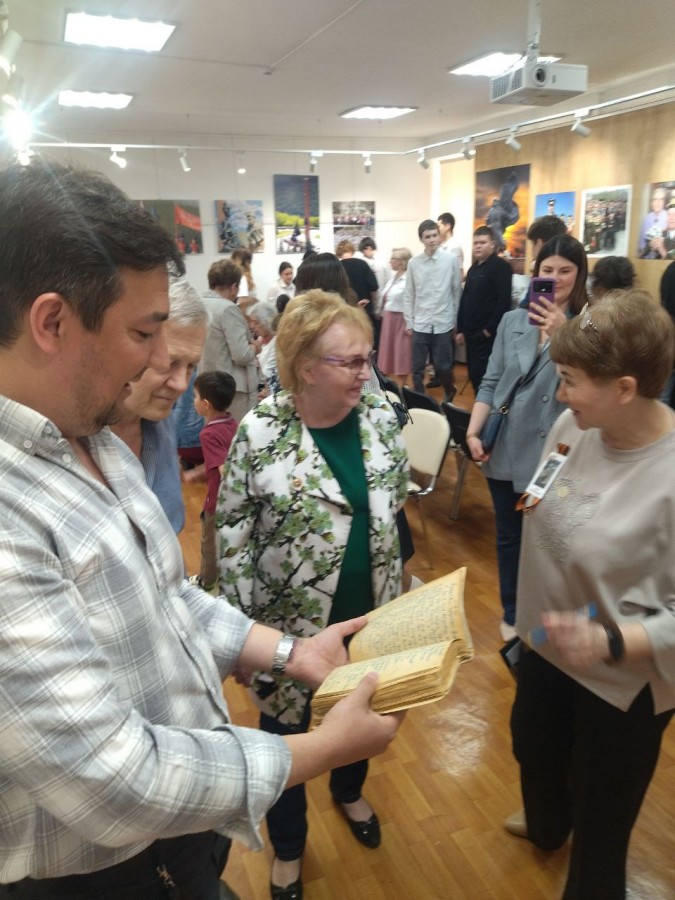 На выставке представлено более 30 фотографий, каждая из которых передаёт дух военного времени, мужество и стойкость солдат. Особое место заняли снимки с выдержками из фронтовых дневников Халидара Хасанова, служившего в 313-м кавалерийском полку. В семье его внука хранятся десятки тетрадей с воспоминаниями о боях, потерях и несгибаемой вере в Победу. Александр Анисимов рассказал о работе над изданием этих записей, включая расшифровку текстов, написанных латиницей и арабской вязью.