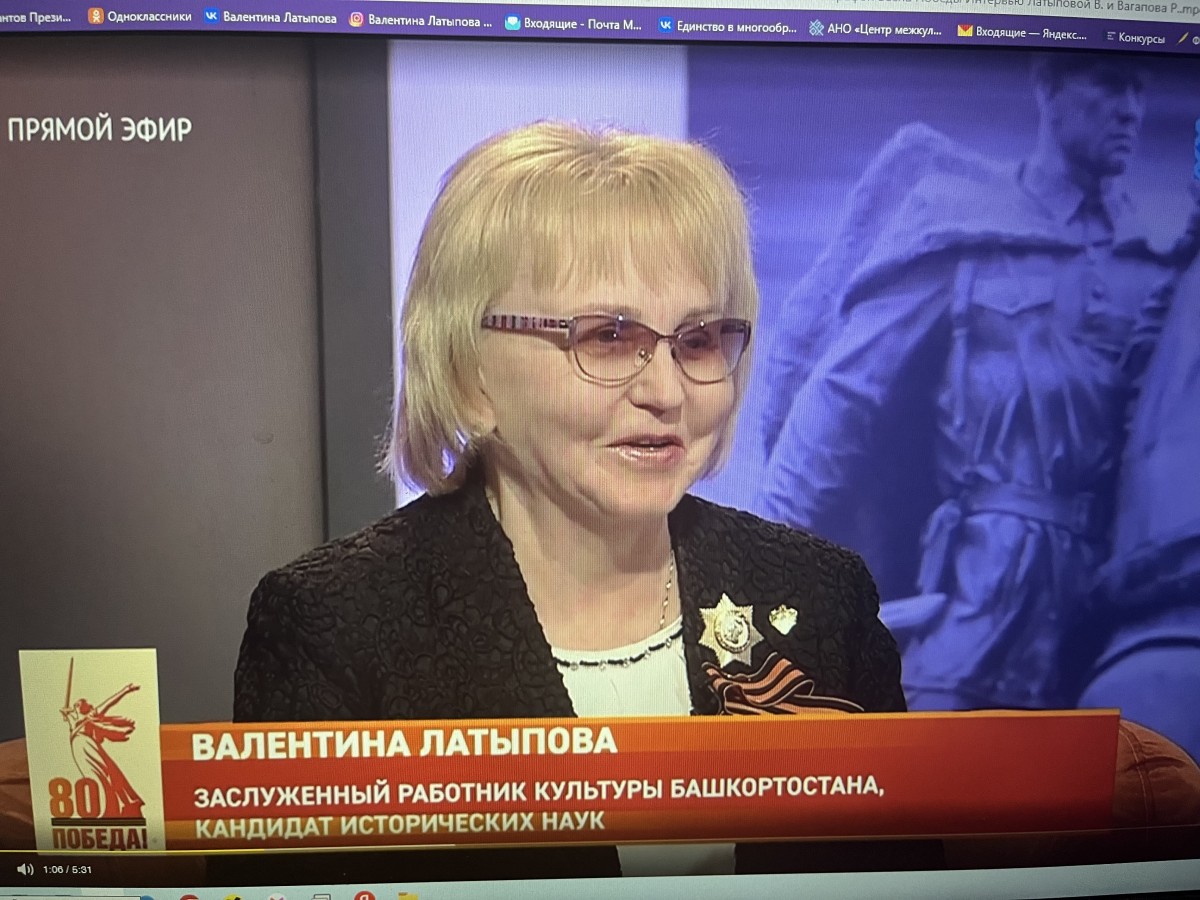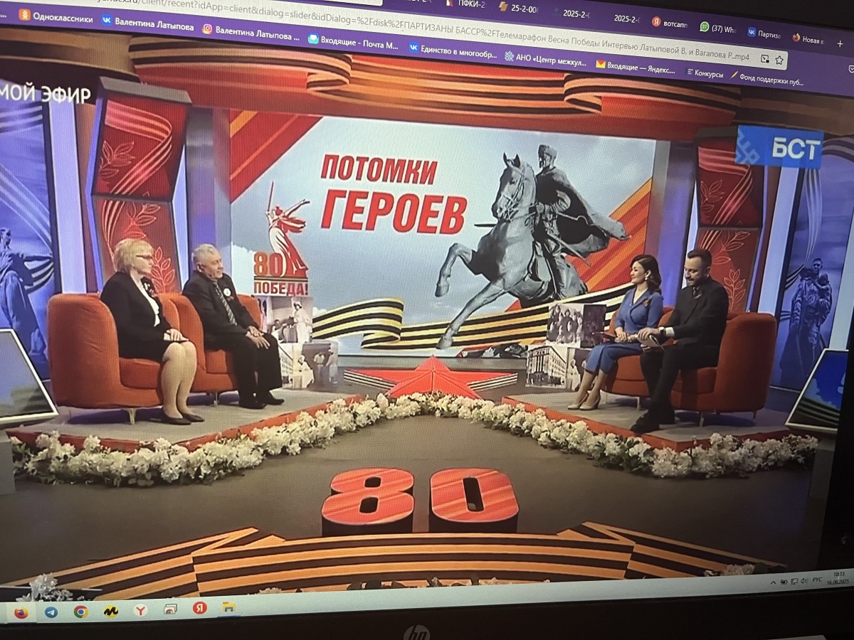 Интервью с Валентиной Латыповой и Робертом Вагаповым, посвященные участникам партизанского движения в годы Великой Отечественной войны из Башкирии в рамках прямого эфира «Весна Победы» 9 мая 2025 года на Башкирском спутниковом телевидении.