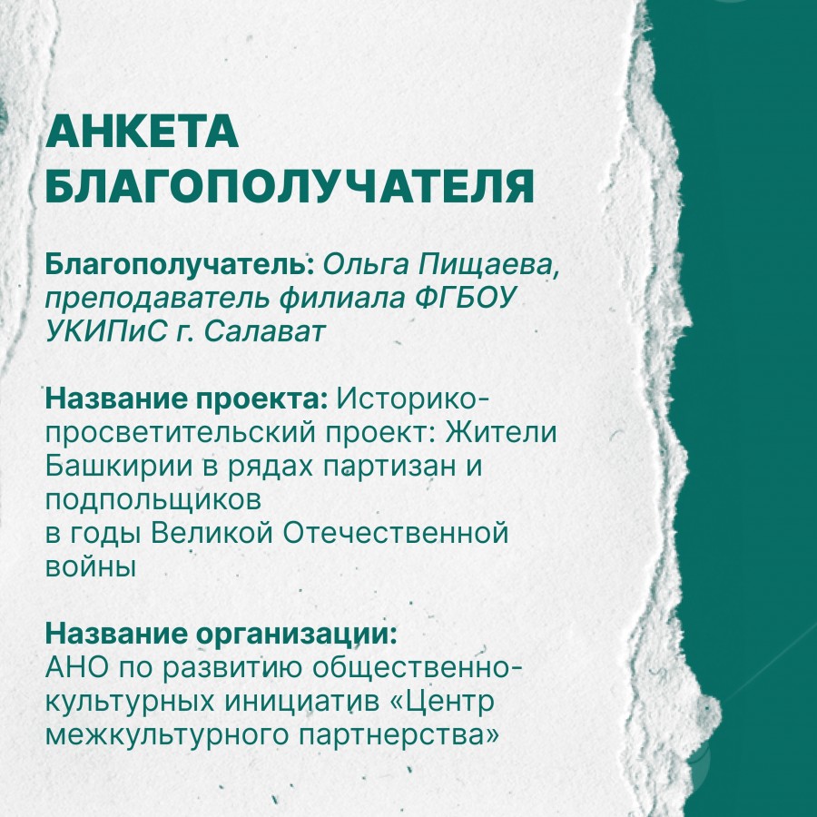 - И мы рады сообщить, что наш новый проект о партизанах-земляках «Жители Башкирии в рядах партизан и подпольщиков в годы Великой Отечественной войны: исследование, цифровизация, патриотическое воспитание» получил грантовую поддержку Фонда грантов Главы Республики на 2026 год!!!