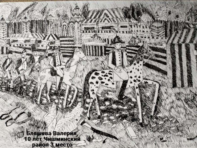 Бляшева Валерия, 10 лет, «Москва горит», тушь, перо, ДШИ Чишминского района, преподаватель - Хабибуллина Эльвира Саитгалиевна