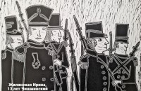 Жилинская Ирина, 13 лет, «Отважные сыны», линогравюра, ДШИ Чишминского района, преподаватель - Хабибуллина Эльвира Саитгалиевна