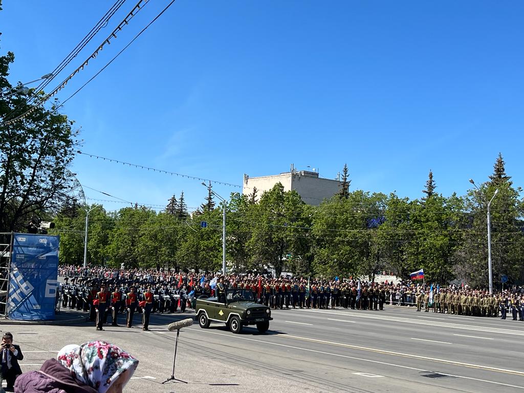 Незабываемым останется в памяти гостей из Донбасса их участие на Параде Победы в г.Уфе, В связи с объективными обстоятельствами торжественного шествия Бессмертного полка с фотографиями защитников Отечества в этом году не было. Однако делегации Донецкой и Луганской Народных Республик присутствовали на Параде Победы рядом с почетными гостями – ветеранами Великой Отечественной войны. В числе гостей, наблюдавших за парадом, были глава Башкирии Радий Хабиров, премьер-министр Правительства республики Андрей Назаров и мэр г.Уфы Ратмир Мавлиев.