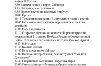 Программа фестиваля включает мероприятия, посвященные Победе России Отечественной в войне 1812 г. и заграничным Русской похода армии 1813-1814 гг. в городе Уфе, Гафурийском, Мелеузовском и Уфимском районах республики совместно с республиканскими и муниципальными учреждениями.