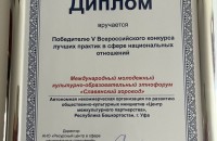 На IV Общероссийской конференции «Устойчивое развитие этнокультурного сектора» победители V Всероссийского конкурса лучших практик в сфере национальных отношений презентовали свои проекты и были награждены дипломами. Награждение состоялось 15 июня в Общественной палате Российской Федерации в рамках большой деловой игры, в которой авторы 25-ти лучших практик стали частью проектной команды по разработке новых межрегиональных этнокультурных проектов.