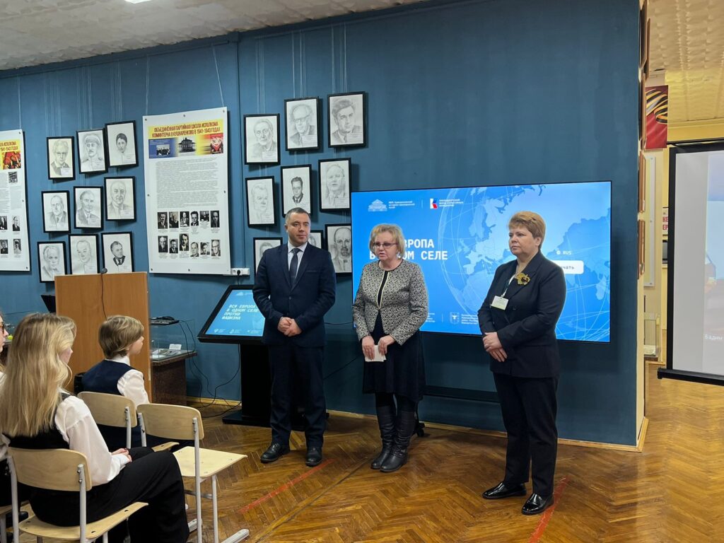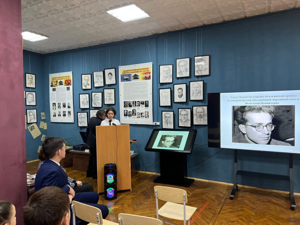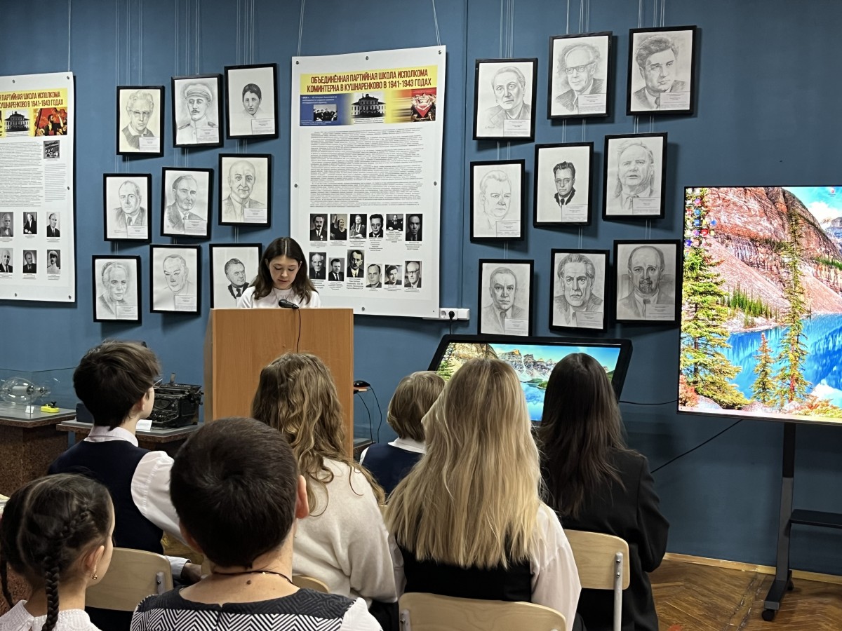 В рамках подготовки историко-мемориального проекта «Фронт в тылу врага. Антифашистское движение в Европе в годы Второй мировой войны» участники проекта - учащиеся Частного образовательного учреждения Центр образования «Новошкола» 15 февраля 2024 года посетили Кушнаренковский историко-краеведческий музей. Учащиеся с большим интересом ознакомились с экспозициями музея, особенный интерес вызвали стенды и экспонаты музея, посвящённые страницам истории Коминтерна. В 1941-1943 годы исполком организации находился в эвакуации в Башкирии, члены Коминтерна жили в г.Уфе в гостинице «Башкирия», а в селе Кушнаренково была открыта секретная спецшкола для разведчиков. В Уфе работали выдающиеся деятели коммунистического движения Георгий Димитров, Пальмиро Тольятти, Долорес Ибаррури, Морис Торез и другие. Они внесли огромный вклад в победу, многие из них принесли себя на её алтарь. Кроме того, своих детей они почти все отправили на фронт.