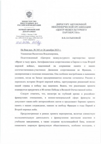 Автономная некоммерческая организация по развитию общественно-культурных инициатив "Центр межкультурного партнерства" планирует направить просветительский проект "Фронт в тылу врага. Антифашистское сопротивление в Европе в годы Второй мировой войне" на конкурс Фонда президентских грантов для получение гранта на его реализацию.