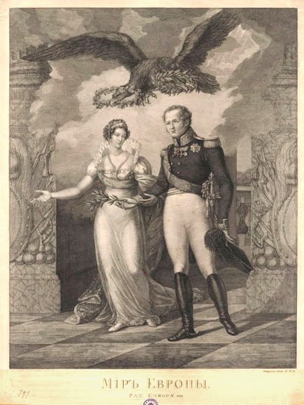 «Вступление российских войск в Париж. 31 марта 1814» (Картина неизвестного художника с оригинала И.Ф. Югеля по рисунку У.Л. Вольфа, 1815, Всероссийский музей Пушкина, Санкт-Петербург)